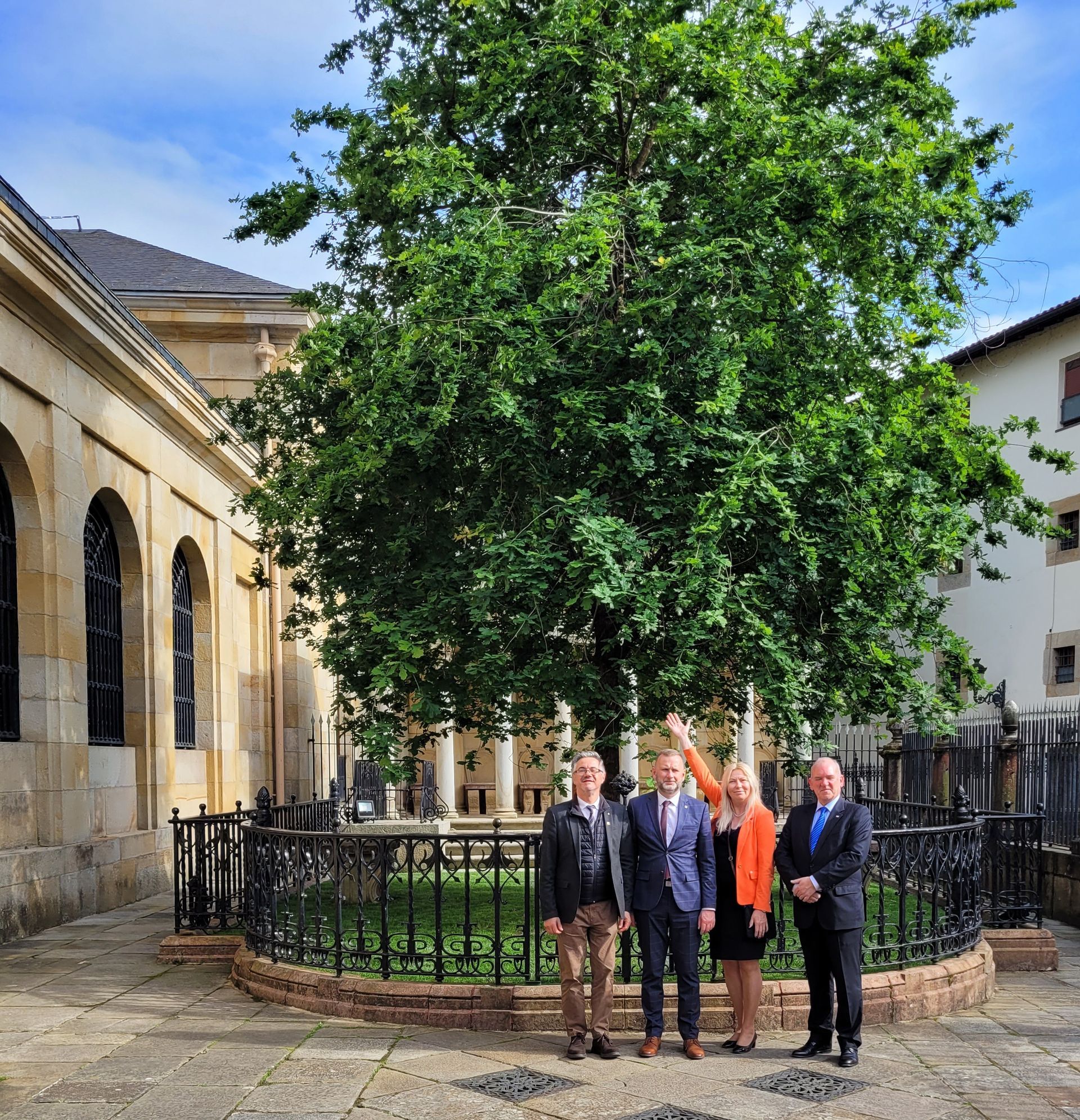 El co-director de la Cátedra de Derechos Humanos y Cultura Democrática del INABE-UBU Don Alvaro Enrique de Villamor junto con la Directora del Instituto de Derechos Humanos de Oswiecim Alicja Bartusz, el Presidente del Parlamento del Municipio de Oswiecim Krzysztof Kania y el Director de Educación del Instituto Auschwitz Birkenau en España Don Eduardo de Ocampo trasladaron al Ministro y al Lehendakari su deseo de buscar líneas de colaboración en proyectos internacionales de Memoria Democrática, de Encuentros Juveniles Internacionales, en materia de Derechos Humanos y proyectos de Paz.
