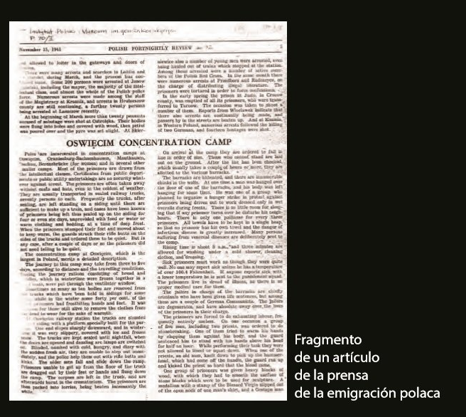 Desde los primeros tiempos de funcionamiento del campo de Auschwitz se transmitía al exterior las actividades que allí sucedían. Los testimonios de los fugitivos, así como los materiales que conseguían extraerse del campo, se publicaban en la prensa clandestina polaca que después se enviaban a Londres.