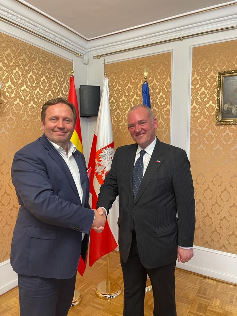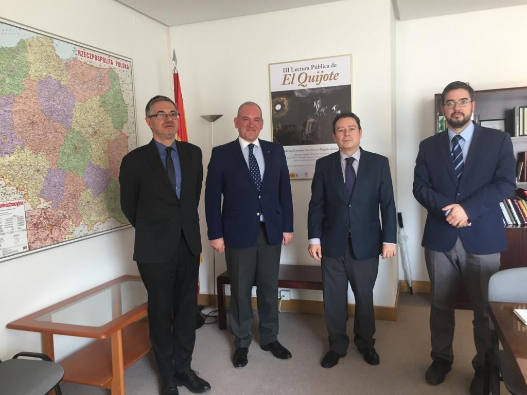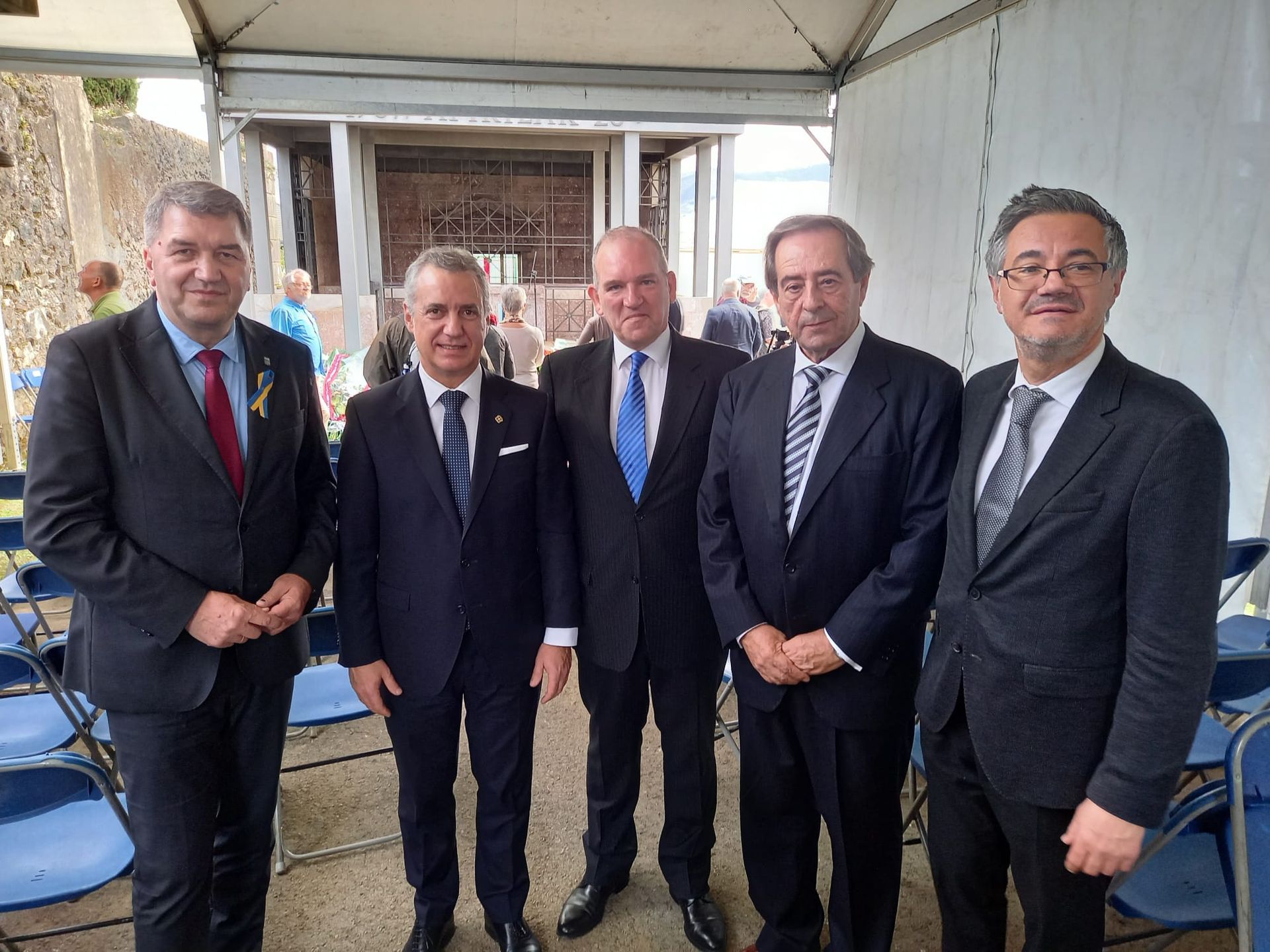 El co-director de la Cátedra de Derechos Humanos y Cultura Democrática del INABE-UBU Don Alvaro Enrique de Villamor junto con la Directora del Instituto de Derechos Humanos de Oswiecim Alicja Bartusz, el Presidente del Parlamento del Municipio de Oswiecim Krzysztof Kania y el Director de Educación del Instituto Auschwitz Birkenau en España Don Eduardo de Ocampo trasladaron al Ministro y al Lehendakari su deseo de buscar líneas de colaboración en proyectos internacionales de Memoria Democrática, de Encuentros Juveniles Internacionales, en materia de Derechos Humanos y proyectos de Paz.