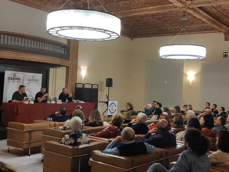 Eduardo de Ocampo y Enrique de Villamor de la Asociación APTCE, explican la importancia de la exposición Auschwitz-Gernika y de las expediciones educativas de la Ruta Cultural de la Memoria Histórica Europea Románico XXI.